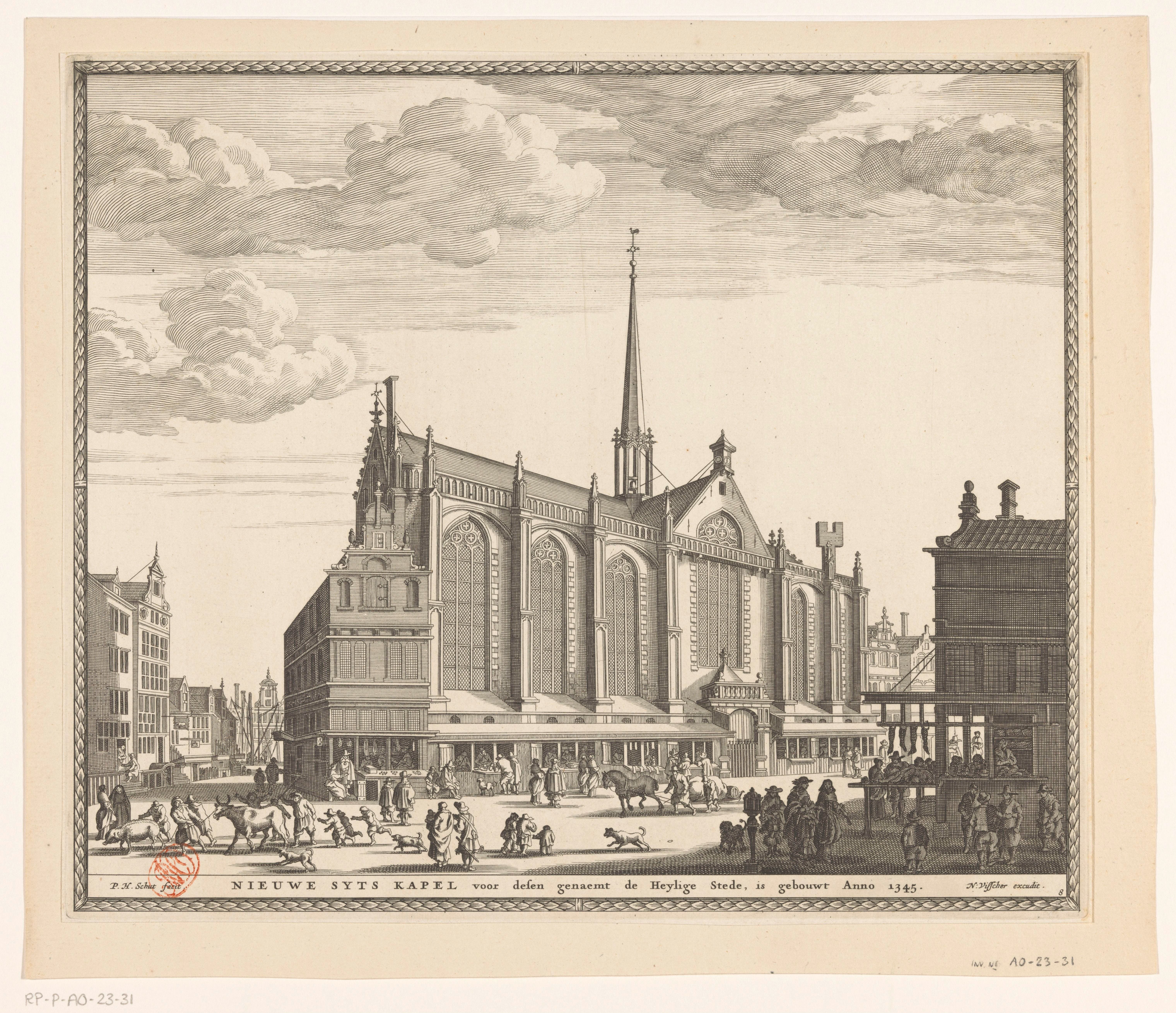 Parts of the chapel are still to be found in the Enge Kapelsteeg and on the roof of De Papegaai (a secret chapel) in the Kalverstraat.