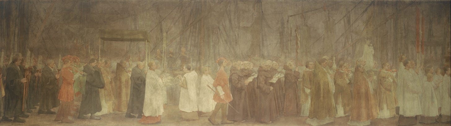The procession ban was finally lifted in 1983. Catholics could have walked with clergy and banners in full public procession for the first time in four centuries. But they did not. The Stille Omgang continued as it was: silent, without religious insignia, without the monstrance raised. A form preserved under persecution that continued to suppress itself long after the persecution ended.