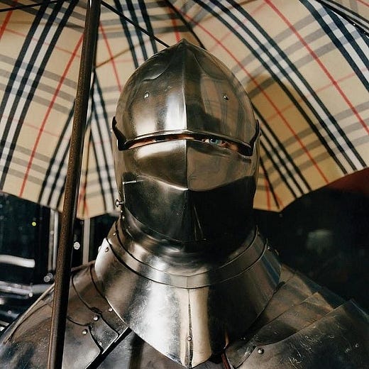 This is kitsch in its precise definition: the form of excellence without the structures that made it possible. The trench coat pretends to be a trench coat. The brogue pretends to be a brogue. The man wearing them performs being someone who cares about quality, while neither he nor the brand has submitted to the actual discipline that quality requires.