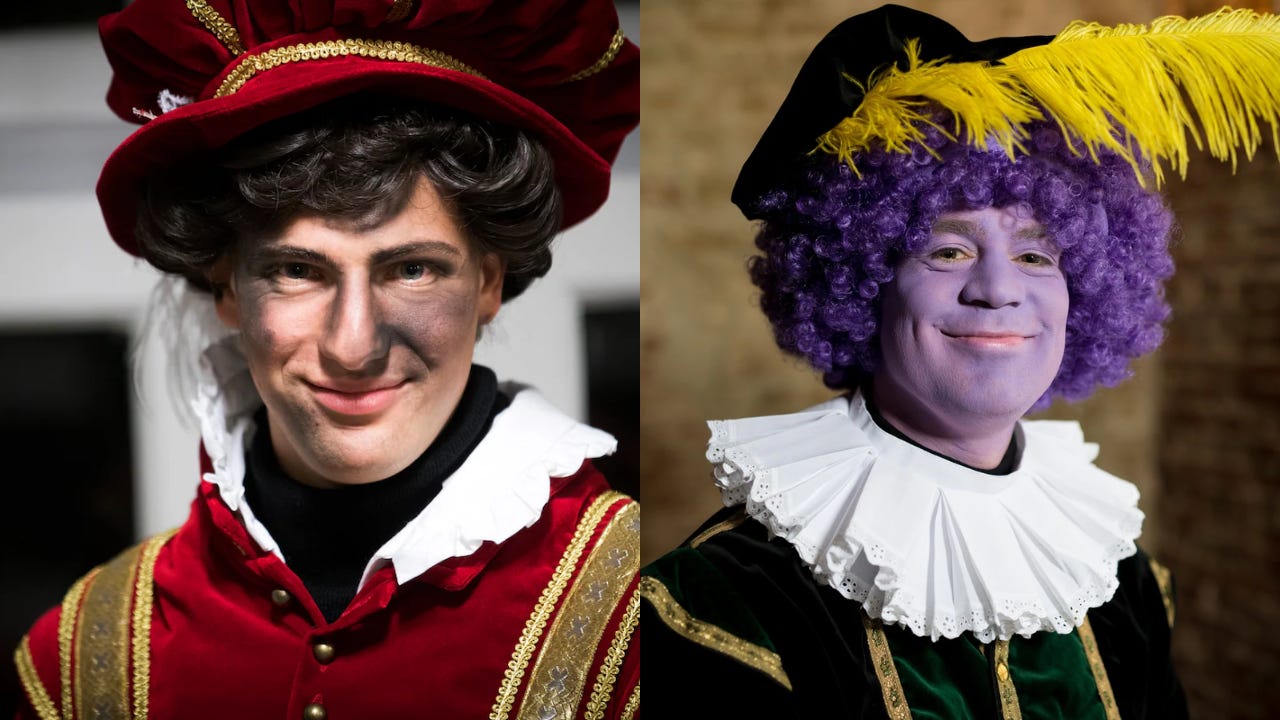 So they came with a compromise: Rainbow Pete, Soot Sweep Pete (Roetveegpiet). Dozen compromises, each more pathetic than the last. Petes with strategically placed soot smudges. Petes in various skin tones to represent ‘diversity’. Costumes changing based on whatever the municipality’s diversity committee approves.
