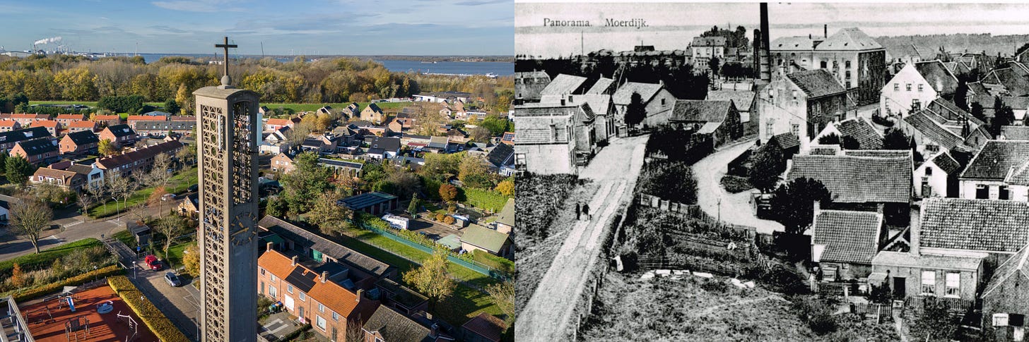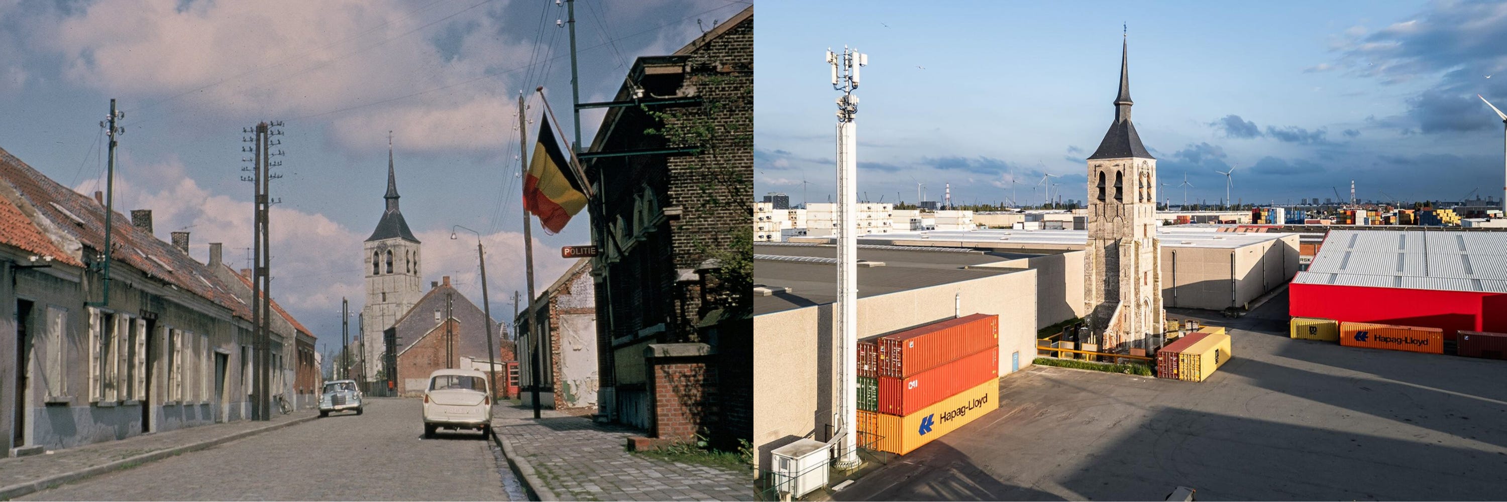 In Belgium, the story is the same. Wilmarsdonk was a village near Antwerp. In 1966, it was erased to expand the port. Only the church tower was allowed to remain.