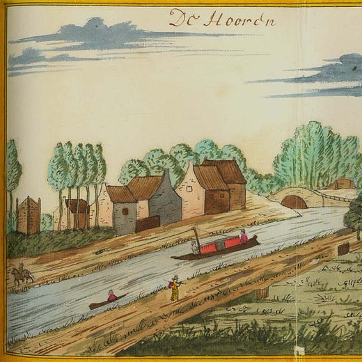 By 1665, the trekvaart network spanned 415 kilometres of engineered canals connecting every major city of Holland. A boat towed by one horse at a consistent speed.
